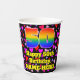 Dieses lustige und farbenfrohe Geburtstagsthema Papier Cup Design zeichnet sich durch eine große Zahl "50" mit einem inspirierten Regenbogenspektrum-Muster aus, zusammen mit der Meldung "Happy 50th Birthday" und einem individuelle Name. Der Hintergrund weist ein Herz-Formen-Muster mit Farben wie Rosa, lila und Rot auf. Fröhliche, fröhliche Papiertassen wie diese können bei einer Geburtstagsfeier/einem Party, das zur Feier des fünfzigsten Geburtstages von jemandem abgehalten wird, Spaß machen. [~Z0000548]