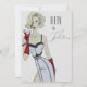 Eine handgemalte Blondine in Aquarellfarbe Button up Modell mit einem formschönen schwarz-weißen Rock und Top mit markanten langen, roten Abend Handschuhen mit einem Martini auf einem stilvollen Vintagen inspirierten 50 und Fabulous - 50. Geburtstagsfeier Einladung in Silber. Diese Einladung ist sexy, elegant und bereit für Sie, um sich anzupassen!