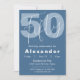 Blauer und weißer Happy 50. Geburtstag Feier Einladung. Passen Sie Ihre Daten an!