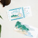 Ein modernes, klassisches Boarding Pass Destination Sandstrand Ziel Geburtstag Einladung. Eine lustige Destination individuelle Einladung können Sie einfach Ihre Überraschungsdetails Party hinzufügen.