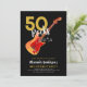 50 Rocks 50. Geburtstagsfeier Einladung mit E-Gitarre mit Feuer Flammenmuster und roter Pick Wache Illustration auf einem schwarzen Hintergrund mit musikalischen Noten. Einfach zu bedienende Vorlagen, um eine individuelle Einladung in der modernen coolen Typografie in Gold und Weiß zu schaffen. Eine großartige Möglichkeit, den 50-Meilenstein Geburtstag des Rockstar Ehemanns Freund Papa oder Freund in Rock und Roll Stil zu feiern und ist ideal für Gitarristen, Musiker und Musikliebhaber. Dieses coole, moderne Musikinstrumentendesign ist ein großartiger Weg, um ein fünfzigjähriges Jubiläum zu feiern. Original-Kunstwerk von Catherine Sweetman