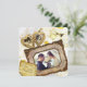 Erleben Sie mit diesem wunderschönen Design einen ganz eigenen Gedenkurlaub mit einem vergoldeten, herzförmigen Schloss für Ihre individuellen Fotos und einem prächtigen barocken Bilderrahmen für Ihr Foto. Eine Vintage Schriftrolle hält Ihre individuelle Namen und Veranstaltungen. Ersetzen Sie die Beispieltexte und Fotos durch eigene, um ein personalisiertes Design zu erhalten. Ideal für Hochzeitsfeiern.