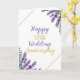 Mit einem sanften Lavendel-Aquarell-Design und lebhaften grünen Blätter und edlen Goldakzenten eignet sich dieses elegante Hotel hervorragend für eine goldene Hochzeitsfeier.
