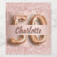 Für eine mädchenhafte und glamouröse 50. Geburtstagsfeier. Eine Rose Gold Imitate metallisch aussehend Hintergrund mit Imitat Glitzer Tropfen, Farbe Tropfen aussehen. Personalisieren und einen Namen hinzufügen. Der Name ist in dunklem Rose Gold mit einem modernen handgeschriebenen Stil geschrieben. Nummer 50 wird mit einem Schriftart im Ballonstil geschrieben.