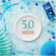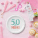 Feiern Sie 50 mit diesem eleganten 50. Geburtstagsdesign. 50 und fabelhaft in Korallen mit pastellgrünem Text.