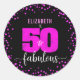"50 und fabelhaft." Besitzen Sie es und geben Sie 50 mit Stil! Versenden Sie diese atemberaubende, moderne, grafische Glasur, Hot-Rosa-Imitat-Folie "50" und Punkte auf schwarzem Hintergrund, 50. Geburtstag personalisierten Rundaufkleber wird dazu beitragen, ihren Geburtstag zu einem Party zu erinnern. Es stehen auch passende und koordinierende Einladungen, Umschläge, Etiketten, Papierservietten, Teller, Tasse und andere Artikel zur Verfügung. Das ist eine tolle Ergänzung zu den Festlichkeiten! Geben Sie einfach den Namen des Geburtstagsmädchens ein und Sie können diesen Aufkleber ganz einfach personalisieren. Bitte schicken Sie mir eine Nachricht mit Fragen oder Wünschen.