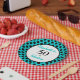 Feiern Sie den fabelhaften 50. Geburtstag Ihres Liebsten als mit diesem kühnen, eleganten 50. Geburtstagsdesign. 50 und Fabulous in türkisfarbenem und schwarzem Text mit lustigen Polka Punkte.
