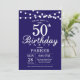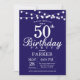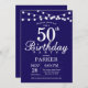 50e anniversaire Invitation avec lumière à cordes. Arrière - plan bleu de la Marine. 13e 15e 16e 18e 20e 21e 30e 40e 50e 60e 70e 80e 90e 100e, n'importe quel âge.