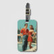 Vintages Bild der 50er Jahre mit einem charmanten Mann und einer Frau in einem kleinen roten Kleid, die sich am Pool amüsieren