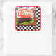 Quadratischer Aufkleber mit einem 50er-Retro-Tafelschild, einer roten Essuhr und einem Vintagen 50er-Frauenserver auf einem Schwarz-Weiß-Schachbrett. Siehe dazu den passenden Aufkleber, Einladung, Einladung "50er Retro Diner Blank Sign" Einladung, 50er Retro Diner Dankeschön Karte, Umschlag und Etikett. Sehen Sie sich die gesamte Auflistung der Nifty 50er Sticker in den EINLADEN an. | Aufkleber und Etiketten.