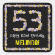 Dieses lustige, in Botanik inspiriert Geburtstags-Design mit quadratischem Aufkleber hat die Meldung "Happy 53. Geburtstag" und einen benutzerdefinierbaren Empfängernamen. Die große Zahl "53" plus die Blume-Icons der Rahmen-Funktion. Blumengeburtsticker wie diese können bei einer Geburtstagsparty zum dreiundfünfzigsten Geburtstag von jemandem verwendet oder verteilt werden oder vielleicht zum Umhüllen von Geschenken/Geschenken oder zur Vorbereitung von Einladungen für eine solche Veranstaltung verwendet werden. [~Z0000652]