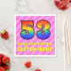 Dieses festliche und fröhliche 53. Geburtstag-Thema Papier Serviette Design hat eine große Zahl "53" mit einem bunten Muster inspiriert durch das Aussehen eines Regenbogenspektrums. Es enthält auch die Meldung "Happy 53. Geburtstag", gefolgt von einem bearbeitbaren Namen. Der Hintergrund weist ein lustiges Muster aus dunkelrosa und hellrosa Streifen auf, die liebende rosa Herzformen enthalten. Geburtstagsbezogene Papierservietten wie diese könnten sich bei einer Feier, die zur Ehrung von jemandem, der seinen dreiundfünfzigsten Geburtstag feiert, veranstalten, als Spaß erweisen. [~Z0000417]