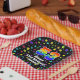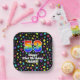This colorful and vibrant birthday-themed paper plate design features a large number “53” having a rainbow spectrum gradient inspired pattern. It also features the message “Happy 53rd Birthday,”, and a customizable name. The background features an exciting and colorful pattern featuring many star shapes with different colors and sizes. Paper plates like this might be used when celebrating somebody’s fifty third birthday. [~Z0000582]