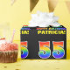 Dieses farbenfrohe, fröhliche und lustige Geburtstagsgepackte Papier-Design zeigt eine große Zahl "55" und die Meldung "HAPPY BIRTHDAY", beide mit einem Regenbogenspektrum inspirierte Musterfärbung, zusammen mit einem kühnen gelben personalisierten Empfängernamen. Der Hintergrund ist schwarz. So ein Geburtstagsthema kann man bei Geschenken oder Geschenken zum fünfundfünfzigsten Geburtstag von jemandem verwenden. [~Z0000475]