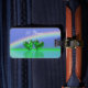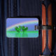 Gepäckanhänger mit meinem Kunstwerk zweier smaragdgrüner Herzen, die unter einem Regenbogen auf dem Wasser schwimmen. Im Text steht "55 Jahre".