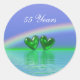 Rundaufkleber mit meinem Original smaragdfarbener Herzen, die unter einem Regenbogen auf dem Wasser schwimmen, mit individualisierbarem Text, der "55 Jahre" sagt.