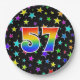 Diese farbenfrohe, lustige und fröhliche Papierplatte zeichnet sich durch eine große Zahl "57" aus, die eine inspirierte Farbgebung des Regenbogenspektrums enthält. Der Hintergrund weist ein farbenfrohes Sternmuster auf. Teller dieser Art können in einem Party zum 57. Geburtstag eines Mannes, zum 57. Geburtstag eines Paares oder zum 57. Geburtstag oder zu einer anderen 57. Veranstaltung verwendet werden. [~Z0000493]