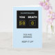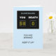 58. Geburtstagskarte Eine lustige Geburtstagskarte zum Geburtstag. Ein Scoreboard zeigt das Alter als Sieger gegen den Tod an. Die Worte "Du bist am Gewinnen, behalt es auf!" komplettieren die Szene.