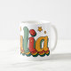 Dieses fröhlich-bunte Design zeigt den Namen „Julia“ in schwungvoller Retro-Typografie mit Sternchen, Streifen und jeder Menge 70er-Jahre-Flair. Die fünf harmonisch abgestimmten Farben sorgen für ein warmes, lebendiges Gesamtbild – perfekt für alle, die es bunt und nostalgisch mögen!