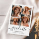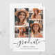 Feiern Sie Ihren großen Tag mit unserem modernen eleganten 5-Foto Abschluss Collage Script Einladung. Diese Einladung enthält ein minimalistisches Design mit einem modernen Kalligraphieskript, das Ihre Namen und Abschluss-Details hervorhebt. Die Einladung beinhaltet eine Collage aus fünf Fotos, die sich hervorragend eignet, um Ihre Lieblingslieder aus Ihrer High School- oder Universitätszeit zu präsentieren. Passen Sie die Einladung mit Ihren persönlichen Daten an und bereiten Sie sich auf das Party mit Ihren Lieben vor. Unsere Einladungen sind hochwertig und perfekt für die Ankündigung Ihrer Abschlussfeier an Familie und Freunde.
