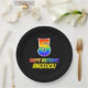 Dieses fröhliche, farbenfrohe und lustige Geburtstagskorb-Design zeichnet sich durch eine große Zahl "5" und die Meldung "HAPPY BIRTHDAY" aus, beide mit einem inspirierten Regenbogenspektrum-Farbverlauf und einem fett gelben, anpassbaren Namen. Es hat einen schwarzen Hintergrund. Geburtstagsthematische Teller wie diese könnten bei einem Party zum fünften Geburtstag von jemandem verwendet werden. [~Z0000488]