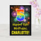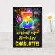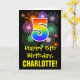 Die Vorderseite dieser farbenfrohen, aufregenden und lustigen Geburtstagskarte zeigt eine große Zahl "5" mit einem inspirierten Muster des Regenbogenspektrums, zusammen mit der Meldung "Happy 5th Birthday" und einem benutzerdefinierten Empfängernamen. Die Vorderseite hat zusätzlich ein farbenfrohes Hintergrundmuster, das durch das Aussehen eines berstenden feierlichen Feuerwerks inspiriert wird. Im Inneren befindet sich eine bearbeitbare Geburtstags-Grußnachricht, oder man könnte sie löschen und leer verlassen werden, wenn eine Nachricht von Hand geschrieben werden soll. Eine personalisierte Geburtstagskarte wie diese könnte eine lustige Art sein, eine Nachricht zu senden, die jemandes fünften Geburtstag feiert. [~Z0000442]