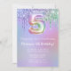 5. Geburtstagsfeier Einladung lila Rosa Glitzer Tropfen 5. Geburtstagsfeier Einladung für ein 5-jähriges Mädchen mit modernem Drehbuch und lustigen Ballons.
