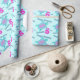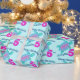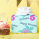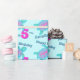 Geburtstags-Packpapier im hellen Aqua und Rosa mit einer wunderlichen Meeresschildkröte der Schwimmens entwerfen. Personifizieren Sie dieses Schildkrötekunst-Geburtstagspapier mit dem Namen und dem Alter Ihr Kindes. Liest z.Z. alles Gute zum Geburtstag Ameila 5 heute. Ideal für junge Schildkröte- oder Seegeschöpfe oder Tierfans. Entwurf und niedliche Herz-Muschelschildkröte gemalt im Watercolor von Sarah Trett.