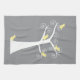 Fünf bezaubernde, abstrakt-gelbe Vögel hängen in einem weißen Baum vor grauem Hintergrund auf Küchentüchern.
