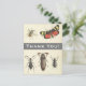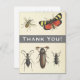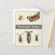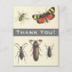 L'avant de cette carte postale de remerciement de style vintage comporte le message appréciable "Merci!", ainsi qu'une représentation de cinq insectes. Le dos contient un message personnalisé d'appréciation. Une carte postale comme celle-ci pourrait être utilisée pour montrer de la gratitude pour quelque chose que quelqu'un a fait.