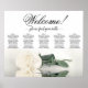 Ce magnifique tableau de places mariage peut accueillir 50 personnes sur cinq tables, avec 10 places par table. Le design est un magnifique mélange de classe, d'élégance et de romantisme, mettant en valeur un unique rose couleur ivoire à long tige, blanc ou crème, se reflétant gracieusement dans un bassin d'eau tranquille. Le titre, rendu en calligraphie script de bon goût, chaleureusement invitations invités avec "Bienvenue! Veuillez trouver votre table", laissant suffisamment d'espace pour les noms du couple et la date du mariage. Ce tableau de sièges est une façon charmante et pratique d'accueillir les invités et de les aider à localiser leurs sièges assignés à la réception de mariage, dégageant un air de grâce et de sophistication.