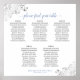Ce tableau de sièges mariage de 5 tables aidera vos invités à trouver la bonne table à votre réception. Le design est à la fois simple et élégant avec du texte gris foncé et bleu clair sur un arrière - plan blanc et un faux fil argenté argent en dentelle floral dans les coins. Le titre dit "s'il vous plaît trouvez votre table" dans une élégante calligraphie de script. Sophistiqué et chic. Comprend l'assignation de table pour 50 personnes avec 10 sièges par table.