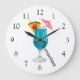 Träumen Sie von einer tropischen Insel mit dieser niedlichen und lustigen Uhr! Diese Uhr sagt Ihnen, dass es irgendwo fünf Uhr ist. Die 5 ist nirgends zu finden und an ihrer Stelle ist das Wort "irgendwo". In der Mitte befindet sich ein tropisches Aquarell mit Ananas-Stück, Kirsche und einem kleinen rosa Schirm. Weißer Hintergrund.