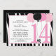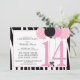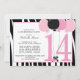 Jolie invitation au quatorzième anniversaire en papier zébrée rose et noir avec ballons gris rose et foncé