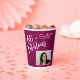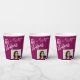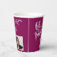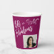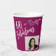 60 and Fabulous Script Photo Magenta 60th Birthday Paper Cups. Trendy white script and white foliage with a custom photo on a chic and vivid magenta red color. Make a 60th birthday party cups for her. Customize with the name and age and add your photo to the template.