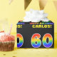 Dieses lustige, fröhliche und farbenfrohe Geburtstagsgepackte Papier-Design zeigt eine große Zahl "60" und die Meldung "HAPPY BIRTHDAY", beide mit einem Regenbogenspektrum inspirierte Musterfärbung, zusammen mit einem kühnen gelben benutzerdefinierten Empfängernamen. Der Hintergrund ist schwarz. So ein lustiges Packpapier könnte verwendet werden, um ein Geburtstagsgeschenk oder Geschenk für jemanden zu verpacken, der seinen sechzigsten Geburtstag feiert. [~Z0000475]