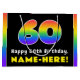 Dieses fröhliche und fröhliche Geschenktütendesign mit Geburtstagsgeschenk präsentiert die Zahl "60" mit einem farbenfrohen Regenbogenspektrum, inspiriert Farbverlaufsmuster, zusammen mit der Meldung "Happy 60th Birthday" und einem personalisierten Empfängernamen. Personalisierte Geburtstagsgeschenktaschen wie diese könnten eine lustige Art sein, Geschenke oder Geschenke einzupacken, die zur Feier des sechzigsten Geburtstages von jemandem gegeben werden. [~Z0000632]