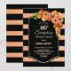 Schwarze und Imitate Glitzer Korallen gestreift Blumenüberraschung 60. Geburtstag Abendessen Party Einladung.