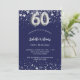 Eine moderne, stilvolle und glamouröse Einladung zu einer 60. Geburtstagsfeier. Ein marineblau-blauer Hintergrund, mit Imitaten verziert, die silberne Sterne tragen. Personalisieren Sie Ihren Namen und Ihre Party-Daten und fügen Sie diese hinzu. Nummer 60 wird mit einem Schriftart im Ballonstil geschrieben.
