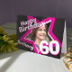 Feiern Sie einen 60. Geburtstag mit dieser Geburtstagskarte aus dem heiß rosa, schwarz-weiß-sternem Foto. Personalisieren Sie diese sechzigste Karte mit Ihrem eigenen Namen und Foto des sechzigjährigen Geburtstagsmädchens. Eine tolle Idee, um einen besonderen Geburtstag zu feiern. Kann verwendet werden, um Fotos oder andere lustige oder peinliche Fotos Ihrer Geburtstagsmädchen 60 Jahre zeigen. Entworfen von Sarah Trett.