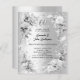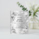 Ein Imitat silber aussehender Hintergrund. Mit Blumen und Imitaten verziert, silberne Schleife und Imitate Diamanten. Personalisieren Sie Ihre Namen und Details und fügen Sie diese hinzu. 1 Blatt = 1 Einladung mit Druckkante bis Kante.