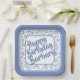 60. Party Random Number Pattern Blau & Weiß Pappteller