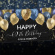 Ballons de parties scintillant en faux bleu et or élégants sur la bordure supérieure. Tout le texte est ajustable et facile à changer pour vos besoins de fête. chaque année, l'âge peut être changé