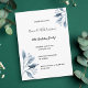 Un invitation de fête du 60e anniversaire élégant et simple. Devant un arrière - plan blanc et chic décoré de branches botaniques bleues, des fleurs. Modèles pour un nom, 60 ans et les détails de votre fête. Dos : couleur arrière - plan bleue classique. Conseil : Si vous ne voulez pas qu'il ressemble à une carte postale, cliquez sur customiser, allez à l'arrière et retirez le séparateur et le timbre postal.