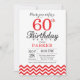 60e anniversaire Invitation avec Red Chevron. Noir et Blanc. Anniversaire adulte. Invitation Anniversaire homme ou femme.