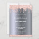 Une invitation magnétique moderne, élégante et glamour pour une fête de 60e anniversaire. Un arrière - plan à l'aspect faux argenté avec d'élégantes gouttes roses, look goutte de peinture. Le nom est écrit avec un script de style moderne blanc et écrit à la main. Modèles pour les détails de votre fête. Parfait pour enregistrer le rappel de date pour vos invités !