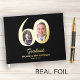 Trendy bold real gold foil typography 60 years man birthday elegant personalized guest book with then and now 2 then and now photos and modern retro style script. Easy to customize with your text and pictures.