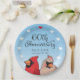 This personalized paper plate makes a cheery decoration for a paar celebrating a 60 year wedding anniversary! A pair of cardinal birds pops up below elegant script text that reads, 60th Anniversary and two names and a wedding date which can be customized. Hearts Form hat die Plattform in Border Around umbenannt.