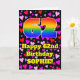 Die Vorderseite dieses fröhlichen und farbenfrohen Geburtstagskarten-Designs zeigt eine große Zahl "62" mit einem inspirierten Regenbogenspektrum-Gefälle, zusammen mit der Meldung "Happy 62. Geburtstag", und einem individuelle Name. Der Hintergrund der Vorderseite weist rosa, lila und rote Herzformen in verschiedenen Größen auf. Die Innenseite hat eine personalisierte Geburtstagsgrüßbotschaft, oder könnte gelöscht und leer verlassen werden, wenn eine Nachricht von Hand geschrieben werden soll. Eine lustige, maßgeschneiderte Geburtstagskarte wie diese könnte eine lustige Art sein, jemandem, der seinen zweiundsechzigsten Geburtstag feiert, eine Geburtstagsgrußbotschaft zu schicken. [~Z0000551]