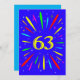 63. Geburtstagsfeier Einladung. Fügen Sie einen Namen und Ihre Details hinzu, um eine fantastische Geburtstagsfeier-Einladung zu machen. Eine explosive Party Zeiteinladung! Was für eine wunderbare Art, Party Einladungen zu verschicken. Die Worte "Party Time" in hellen Farben mit einer Explosion von hellen Farben und Sternen.